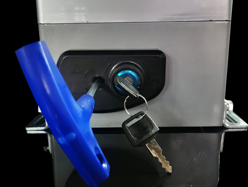 產(chǎn)品主要功能特點: 1、微機智慧化->內(nèi)置智慧控制器單鍵,實現(xiàn)開門-停止-關(guān)門-停止,實時計算機控制,遇阻反彈,機械行程帶慢停關(guān)門功能。 2、停電應急->電機側(cè)旁留有鑰匙可打開離合開關(guān),手動開啟門。 3、功能選配->主機留有紅外線,手動關(guān)門,門禁器,報警燈接口,用戶可自行選購。 4、密碼保護->滾動碼遙控收發(fā)器,防止盜碼。 5、更高安全性及安裝便捷性、更長的使用壽命。